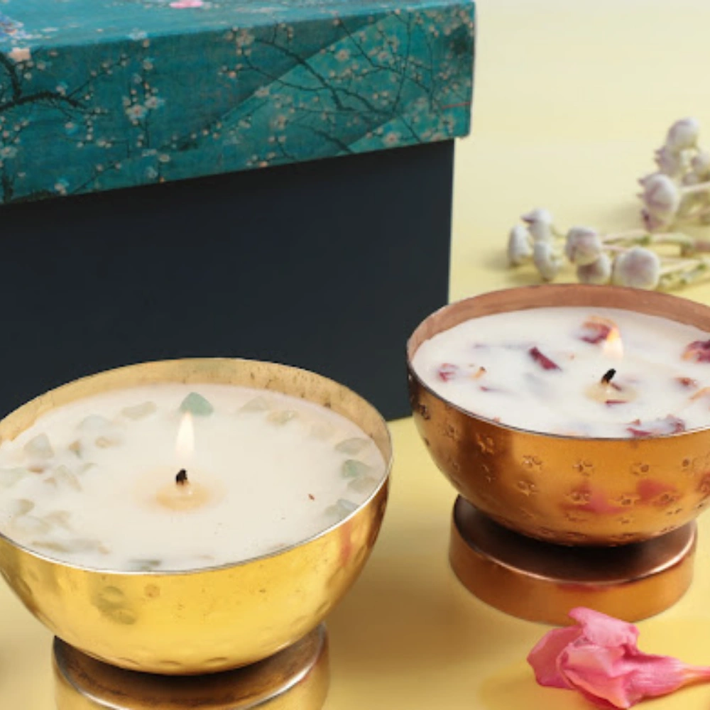 Lakshmi & Kubera Candle Set, a harmonious pair inspired by the deities of wealth, prosperity, and abundance. The Lakshmi Candle radiates serenity and grace, infused with calming lavender and revitalizing eucalyptus. This soothing blend evokes the divine presence of Lakshmi, the goddess of fortune, inviting peace and prosperity into your space. The Kubera Candle, dedicated to the god of wealth, energizes with zesty lime and sensual ylang-ylang. This invigorating aroma captures the power of Kubera, drawing abundance, prosperity, and success into your life. Together, these candles create an aura of abundance and balance, perfect for spiritual growth and material blessings.
